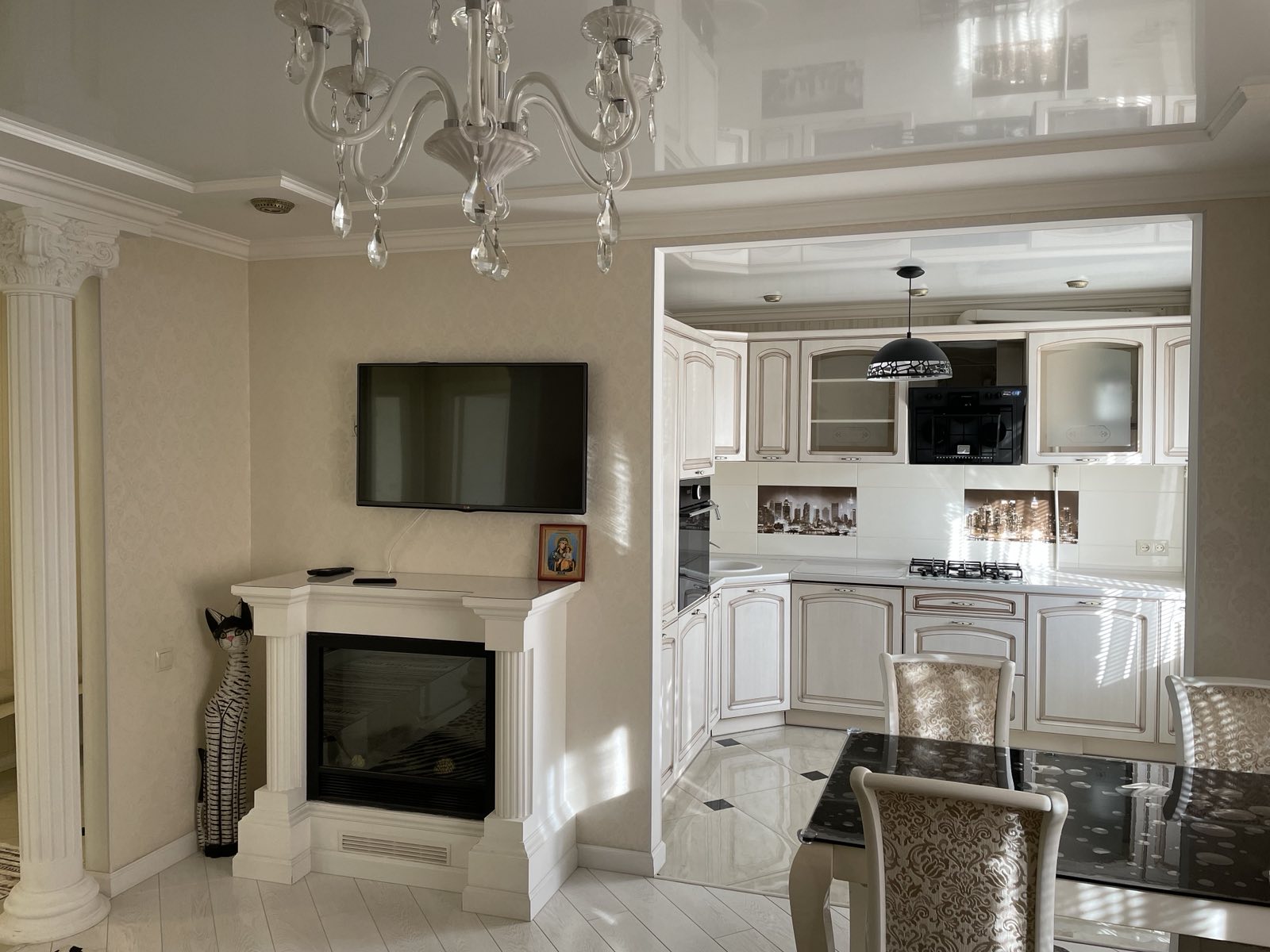 Квартира світла,не кутова,вікна квартири виходять на схід дуже тепла,повністю обставлена,є необхідні меблі- шафа,2 спальний розкладний диван в гарному стані,не продавлений,чистий,вбудовані кухонні меблі,стіл,стільці) та техніка (холодільник,пральна машина кондиціонер )