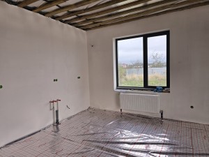 Продаж одноповерхового будинку незавершенного будівництва в с.Тетерівка. Ділянка 10 соток приватизованої землі. Загальна площа 120м.кв., 3 окремих кімнати,2 санвузла, кухня-вітальня 45м.кв., тераса, тепла підлога, світло 15кВт.,криниця, септик.