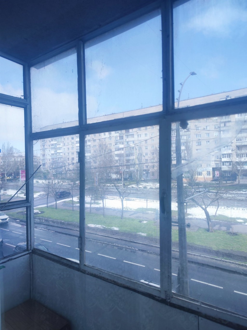 З великої кімнати віходить засклений балкон ,з панорамним видом на Центральний проспект
