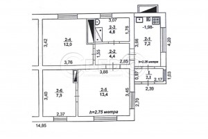 - 3 кімнати: 13,4 + 12 + 7,9 м.кв.