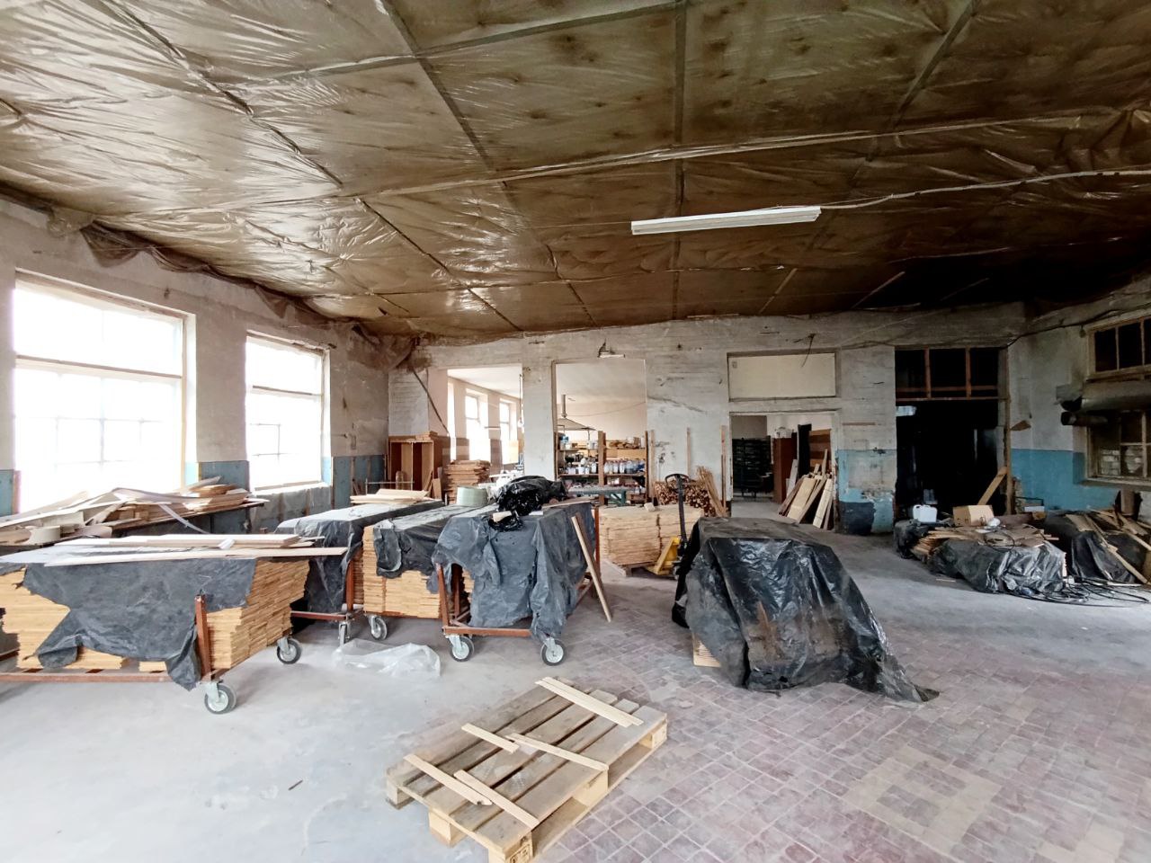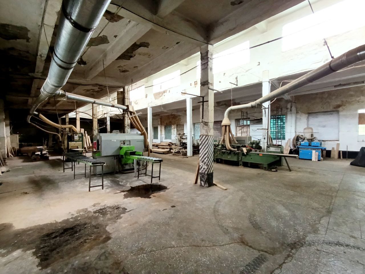 Комплекс складається з: контори (офісних приміщень), головного корпусу (виробничих приміщень), цехів (виробничих приміщень), складів (критих приміщень). На територію комплексу заходить ЖД колія (яка потребує ремонту і відновлення), є велика рампа зі сторони колії. Висота приміщень від h=3 м. до h =6.2 м.. Є великий склад термос (зроблений по технології холодильника не вистачає тільки устаткування). Сушильний комплекс для деревини, устаткування для термообробки. Робочі автоваги на прохідної. Вся територія заасфальтована. По всій території відео нагляд. Деякі приміщення потребують ремонту.