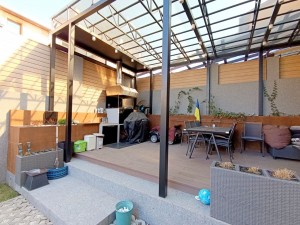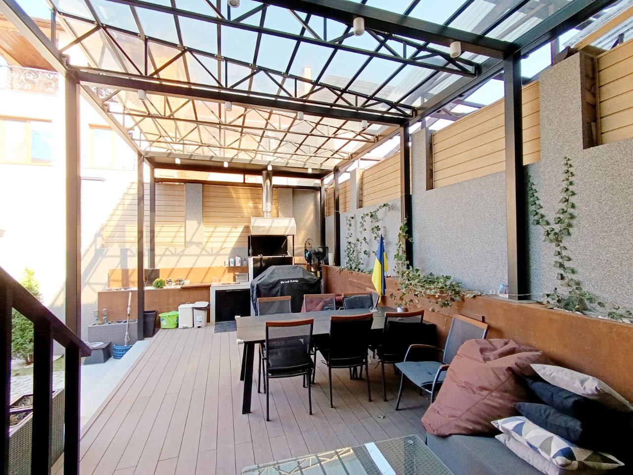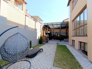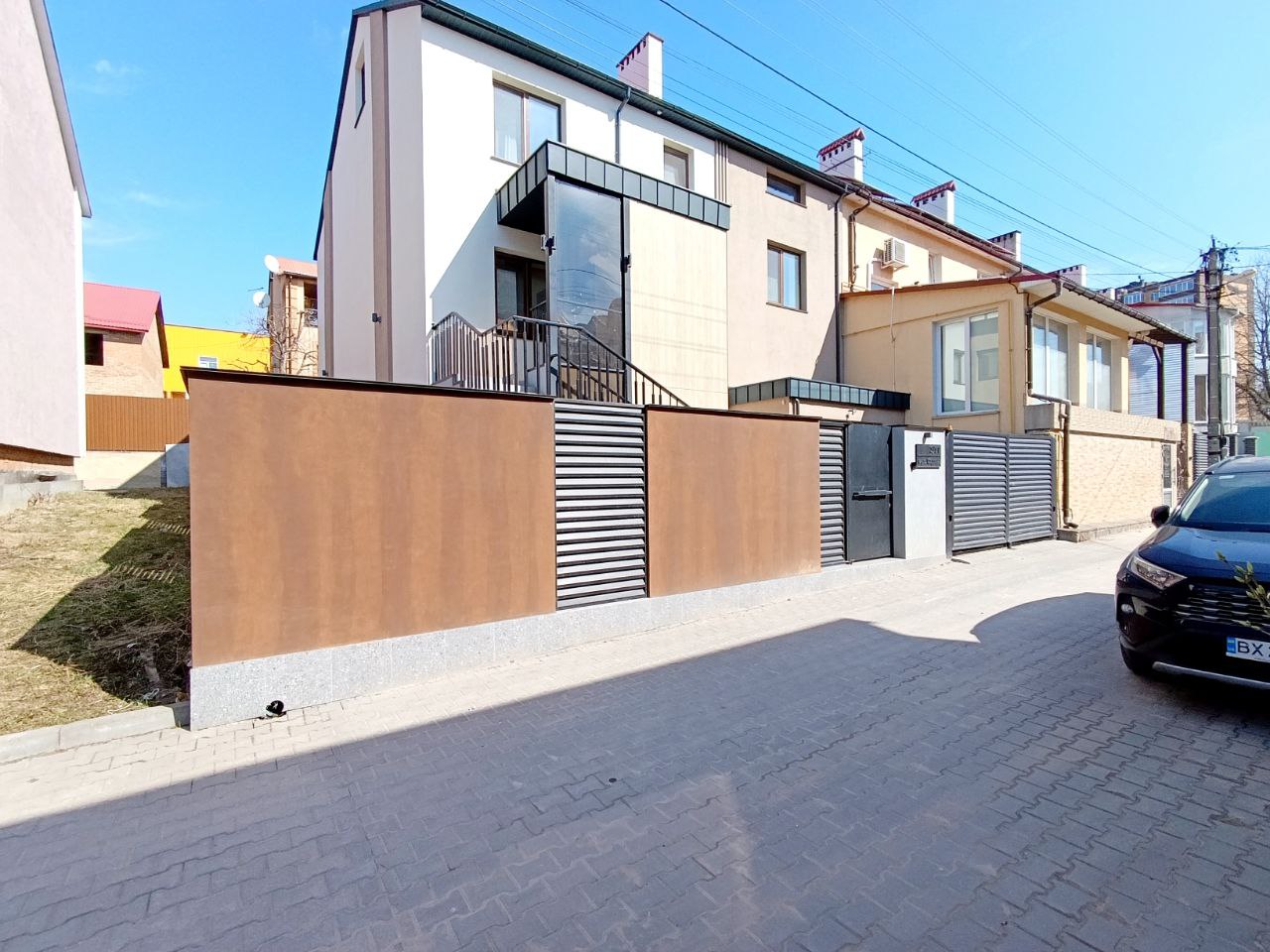 Ділянка 3 сот. з ландшафтним дизайном, газон, туї, навіс на всю мангальну зону – вивід води, підвід каналізації. Підігрів прибудинкової території і вхідної групи (сходи). По всьому периметру будинка освітлення і відео нагляд. По периметру ділянку встановлений сучасний і стильний паркан.