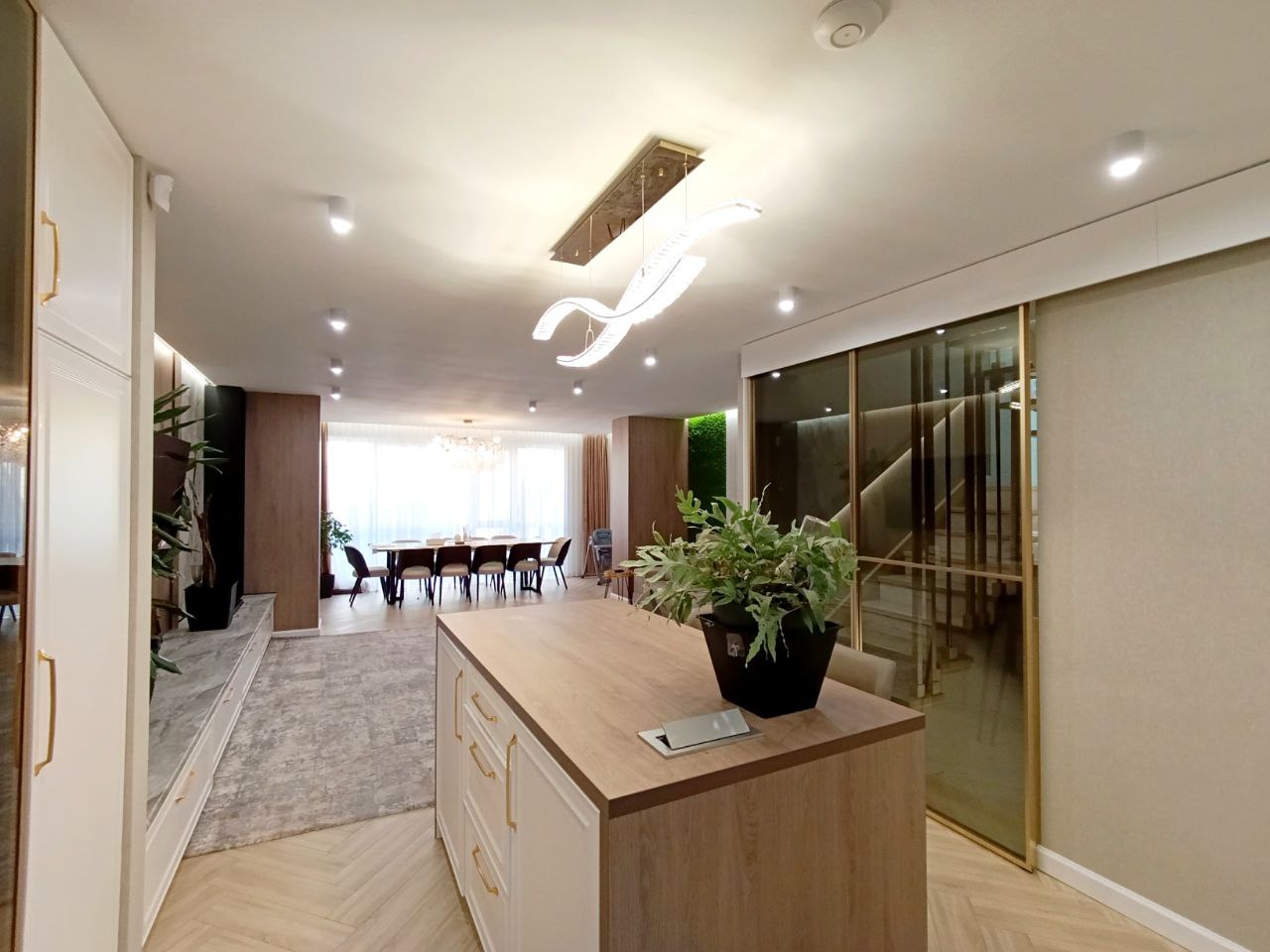 Весь будинок управляється і контролюється з смартфона – РОЗУМНИЙ БУДИНОК (управління senso comft). На весь будинок встановлена спліт система з рекуперацією повітря (в кожній кімнаті кондиціонер Panasonic 8шт). По периметру будинка камери. В кожній кімнаті регулюється окремо температура за допомогою панелі управління в кімнаті чи з телефона, опалення підлогове і радіаторне. Інвертор з батареєю на 9 кВт якої вистачає більше як на добу автономної роботи будинка + резерв генератор. Опалення котел газовий Vaillant (ecotec plus 45 кВт) і електричний котел Proterm 28 кВт. Бойлер Prazice 285 літрів. Є резервна власна свердловина, насосні групи meibec. Фільтрація води - Хімводоочистка ecosoft. Кухня оснащена всією можливою технікою (великий холодильник, морозильна камера, мікрохвильова піч, духова шафа, посудомийка, … ). В гаражі зарядка для електро кара на 30 кВт (в будинок заведено 50 кВт). На все лічильники, на електрику День-Ніч.