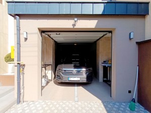 1-й поверх: 52.3 м2 – кухня вітальня, 45.7 м2 – гараж на два авто, 4.7 м2 – санвузол (гостьовий), 2.7 і 3.4 м2 вхідна група (відсікає холодне повітря з вулиці).