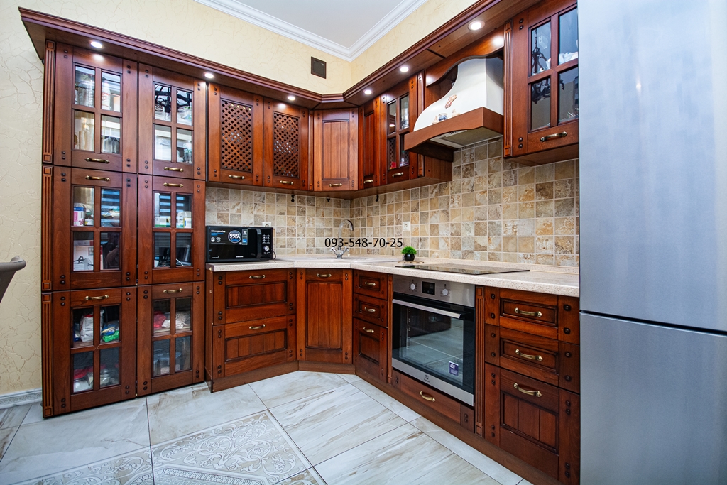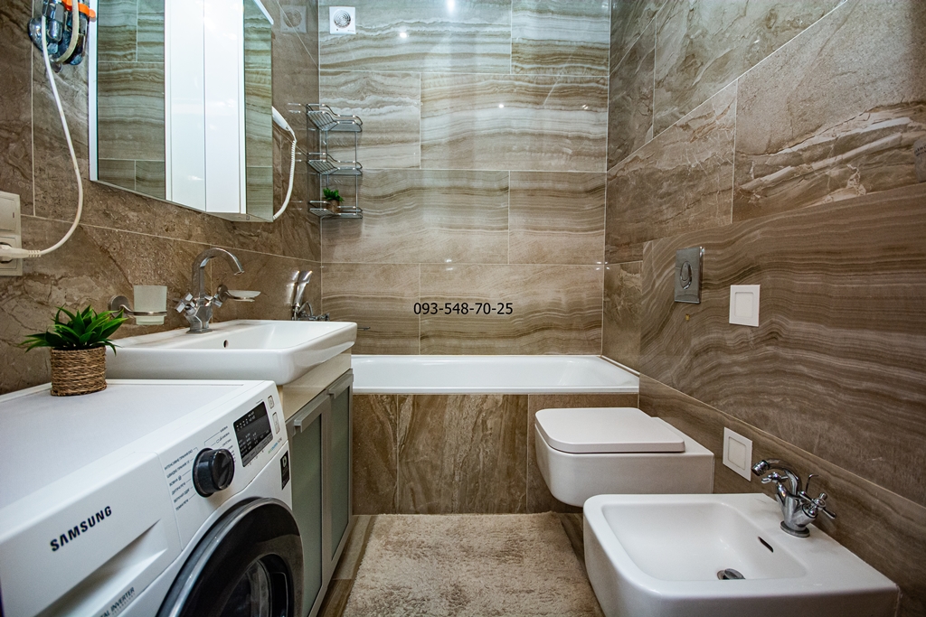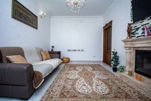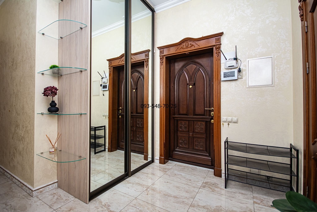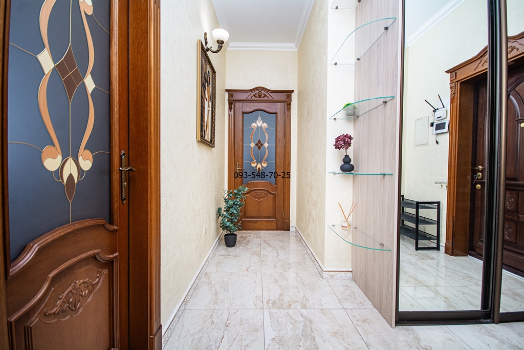 Ремонт зроблений з якісних еко-матеріалів: паркетна дошка, керамограніт, мармур, меблі з натурального дерева. В кожній кімнаті кондиціонер. Всі вікна квартири з панорамним видом на Дніпро та історичний Київ.