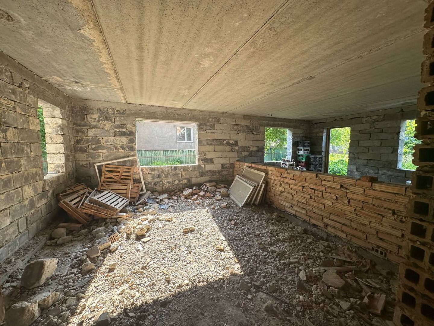 Справа розташоване незавершене будівництво житлового будинку, площею - 200 кв.м.