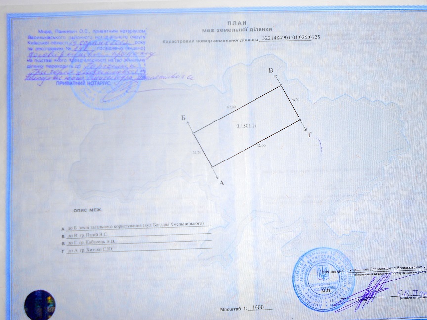 Продам земельный участок 0.1501 га в Васильковском р-не, с. Малая Солтановка, ул. Богдана Хмельницкого, под строительство и обслуживание жилого дома, ровный, прямоугольный, размеры 24,2 Х 62 м., рядом газ, электричество, озеро - 1км., до маршрутки 1км., недалеко монастырь, сосновый лес.