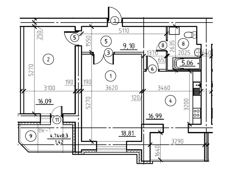 Жила площа: 37 кв.м