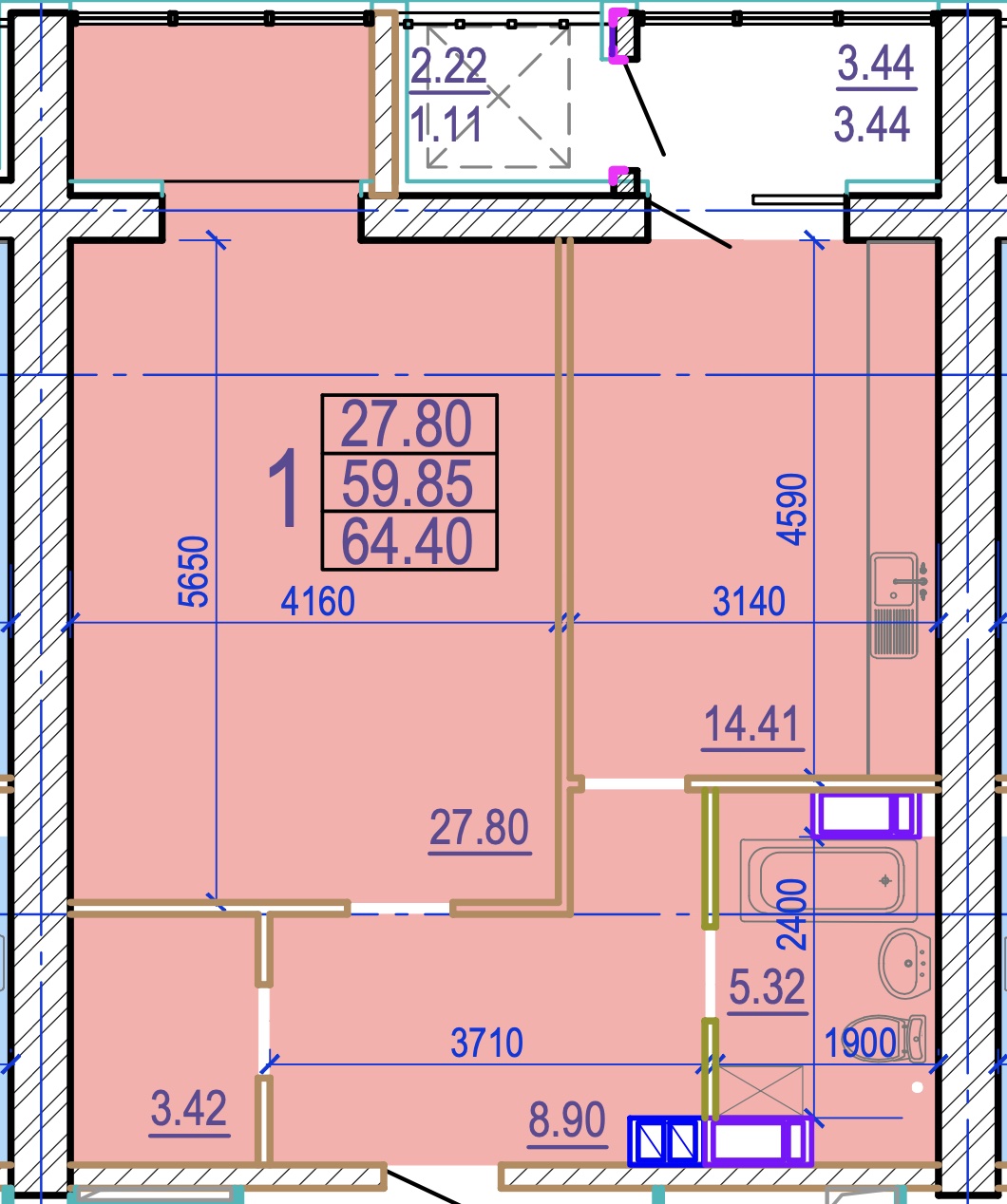 Загальна площа: 64.4 кв.м