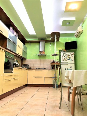 Загальна площа - 150 кв.м: кухня-їдальня - 32 кв.м, три окремі кімнати, два санвузли, три балкони, просторий хол.
