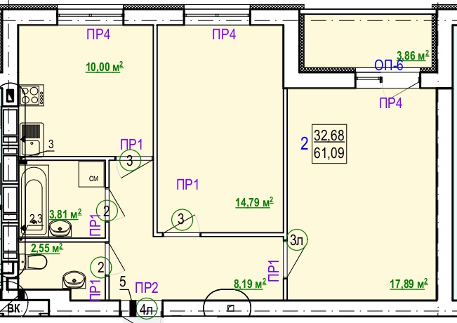 Загальна площа: 61 кв.м