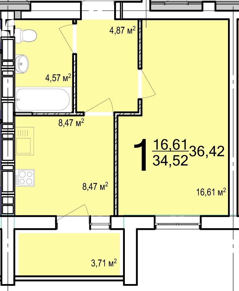 Загальна площа: 36 кв.м