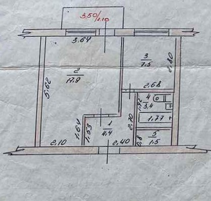 3 кімн., площа 56/41/4, поверх 2/5