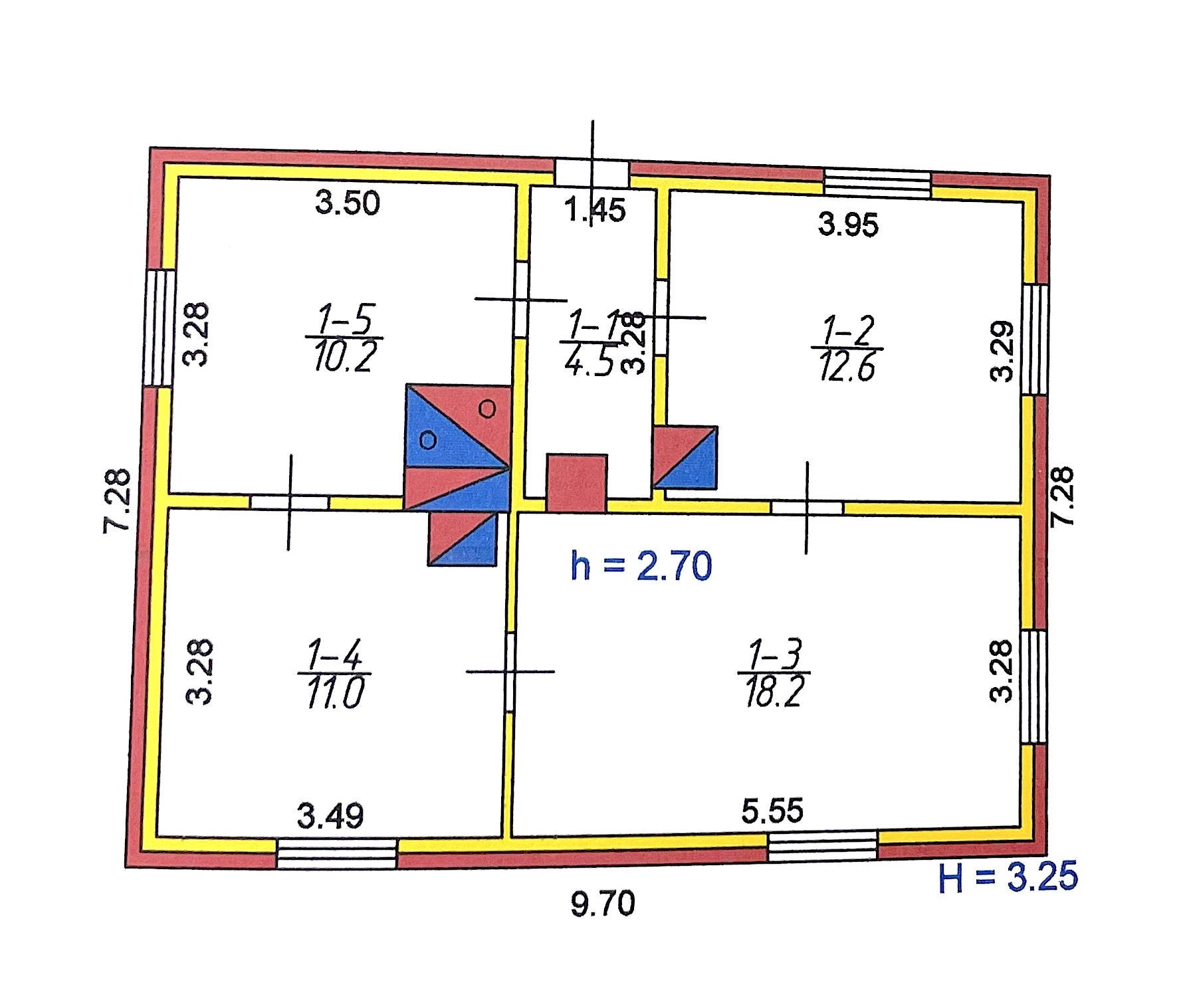 Площа будинку 56м2, матеріал стін дерево обкладено цеглою