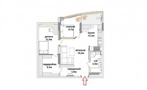 2 кімн., площа 68/27/14, поверх 7/12